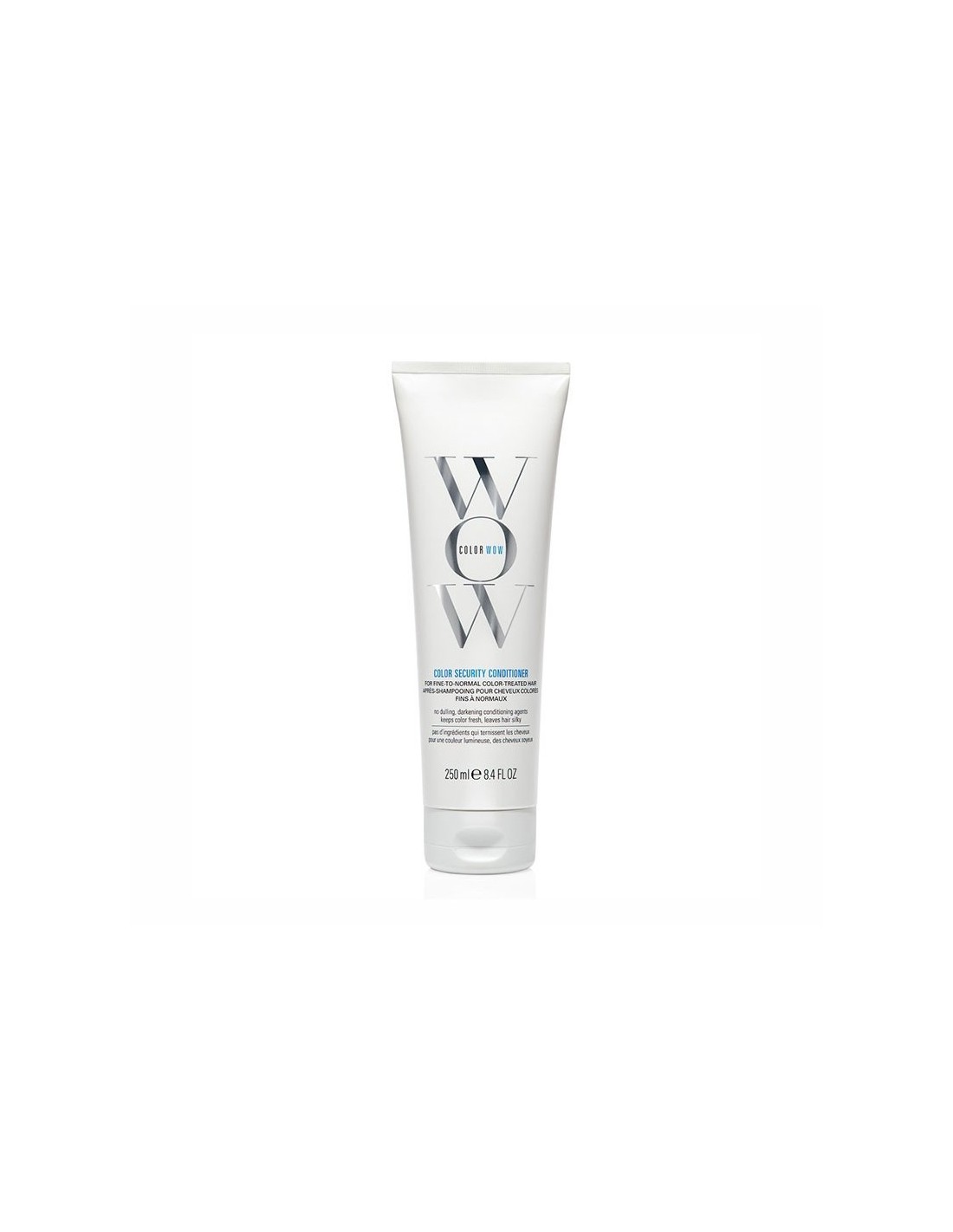 Color Wow Color Security Conditioner Fine es un acondicionador ligero sin siliconas, especialmente formulado para cabellos finos y teñidos. Desenreda, hidrata y fortalece sin apelmazar, manteniendo el color vibrante y el cabello suave y sedoso. Su fórmula exclusiva evita la acumulación de residuos, controla el frizz y aporta brillo luminoso, protegiendo la fibra capilar frente a agentes externos y daños térmicos.
