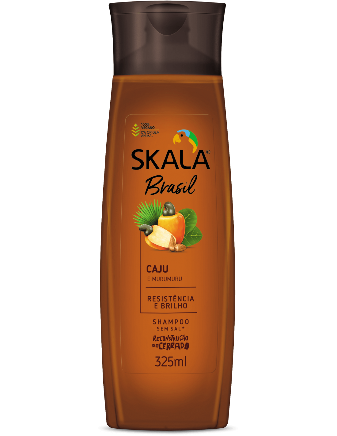 La Reconstrucción de la Línea Skala Brasil de Sellado Caju y Murumuru acelera la reconstrucción, otorgando un alto poder de penetración a la fibra capilar, disminuyendo la porosidad de los hilos. Murumuru es 100% brasileño, extraído del aceite de las semillas de una palmera espinosa de hasta 10 metros de altura. Fruto verde, amarillento o rojizo en su madurez. Mantequilla de altísima calidad.