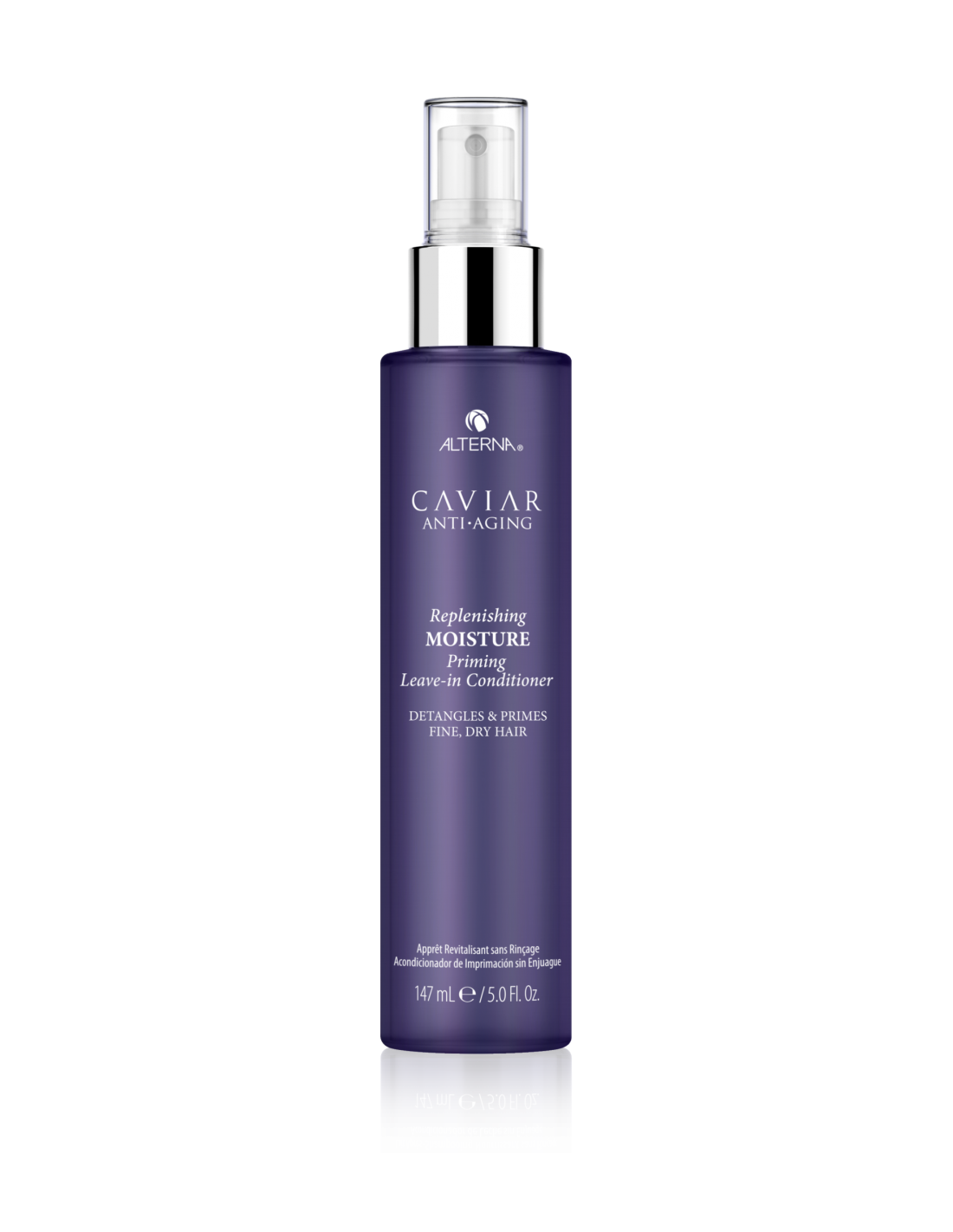 Alterna Caviar Replenishing Moisture Priming Leave In Conditioner es un spray acondicionador sin enjuague ligero, formulado con Moisture Restoring Complex, para desenredar y cebar el cabello fino y seco, proporcionando protección contra el calor y una barrera contra la humedad para el control del frizz y la retención del estilo. El cabello queda hidratado, manejable y saludable, sin peso adicional.