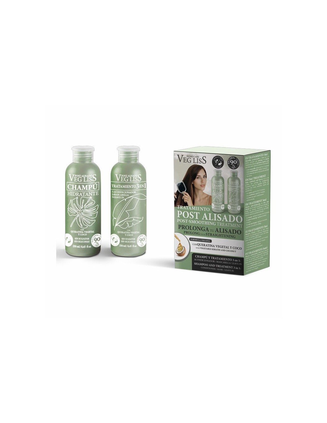 Este pack es el complemento perfecto tras el alisado con VegLiss Vegan Care, ya que ayuda a extender los resultados del tratamiento entre 8 y 12 semanas, conservando un aspecto sano, liso y brillante sin necesidad de calor excesivo ni retoques constantes.